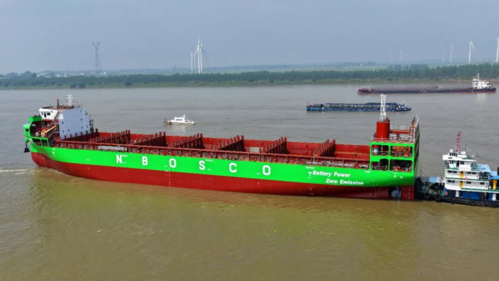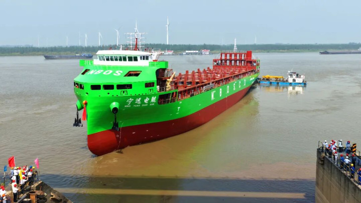 9月29日,我国航运业迎来历史性突破。由江西江新造船有限公司为宁波远洋运输股份有限公司建造的“740TEU纯电动敞口集装箱船”在江西湖口成功下水。据介绍,该船是全球最大、国内首制万吨级纯电动智能海船,其下水标志着我国沿海集装箱运输正式迈入零排放、纯电动时代。
